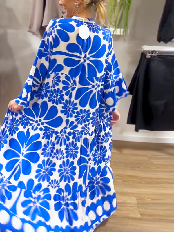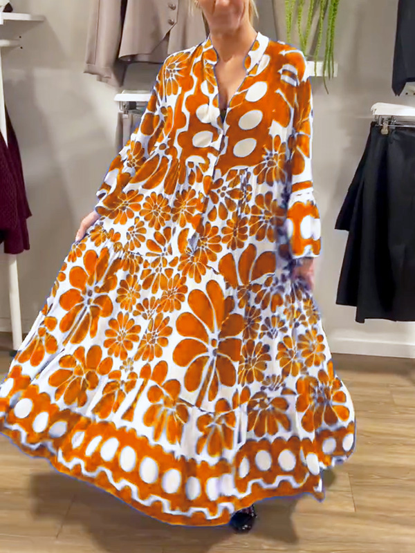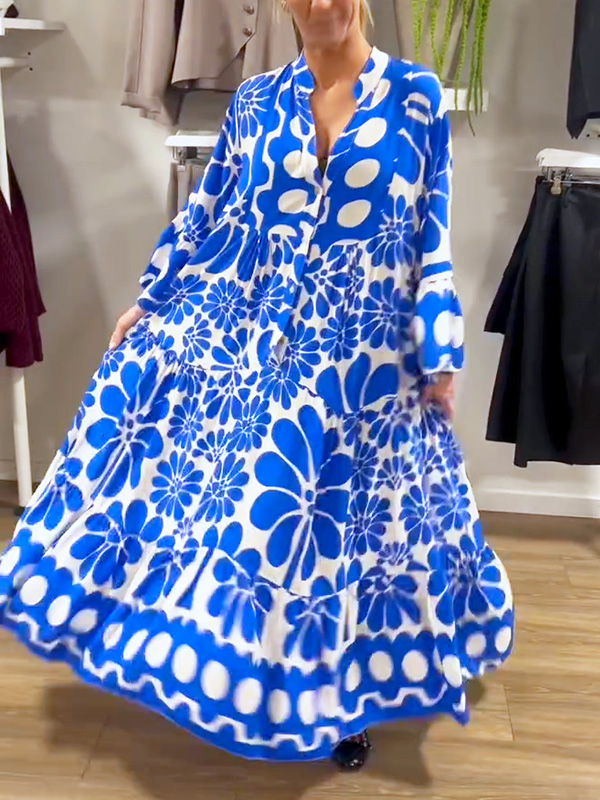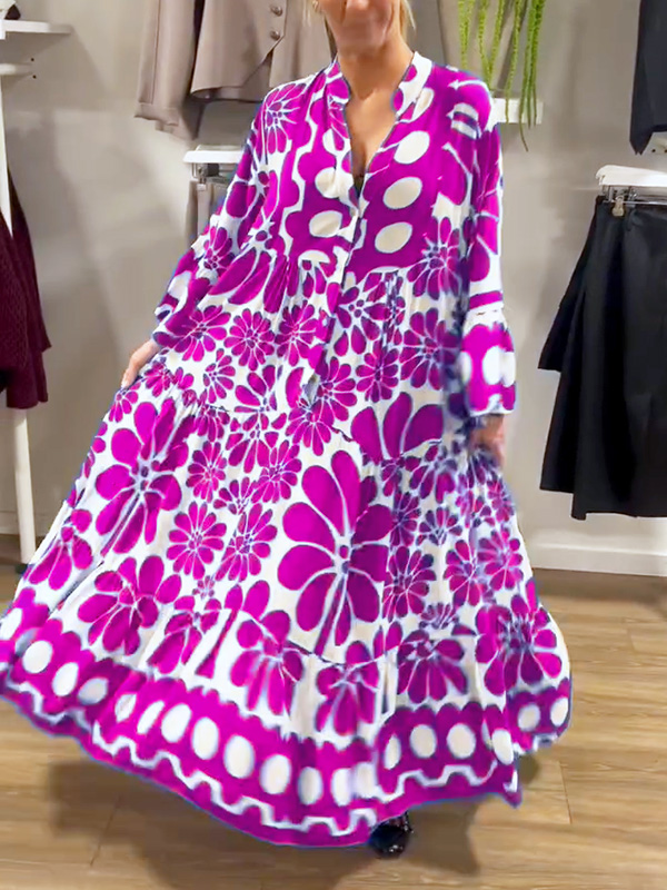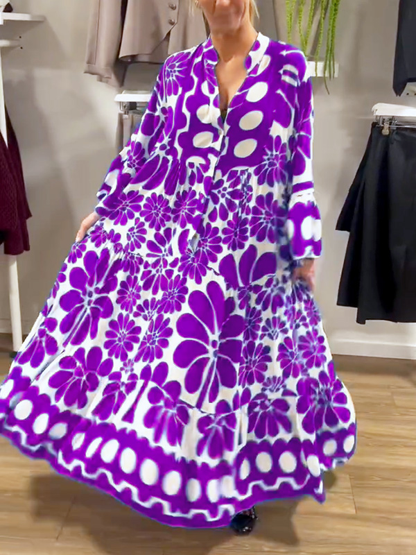 Introducing our V-Neck Button Printed Dress, designed for the modern woman who values sophistication and style. This dress features a stunning print and elegant maxi length, making it perfect for any occasion.